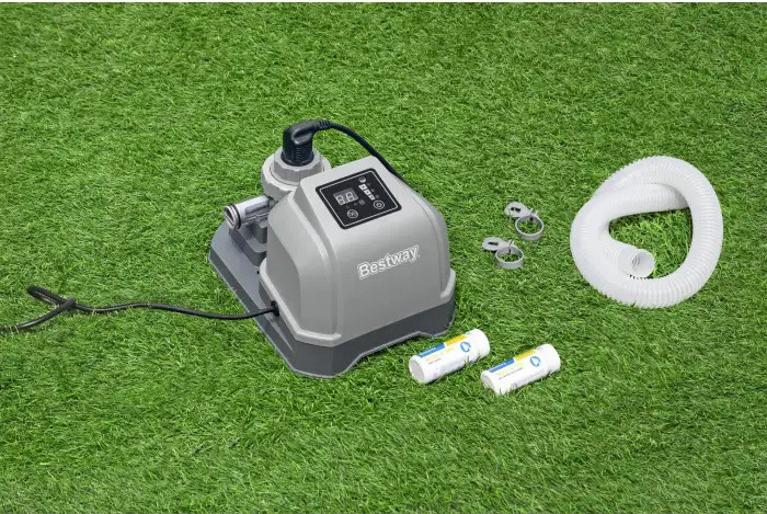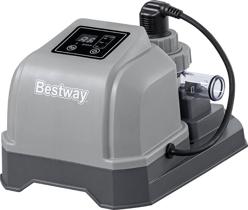 Solinátor Bestway® Hydrogenic ist eine moderne Lösung zur Pflege des Wassers im Pool ohne die Notwendigkeit von herkömmlichem Chlor. Das System ist für Pools mit einem Volumen von bis zu 8.327 Litern ausgelegt und sorgt durch die Umwandlung von Salz in Chlor für kristallklares Wasser, das sanft zur Haut, zu den Augen und zu den Haaren ist.