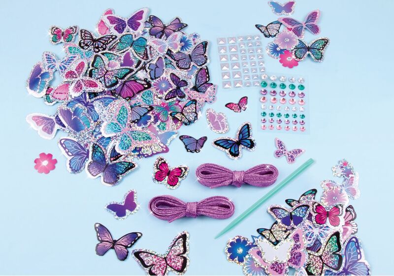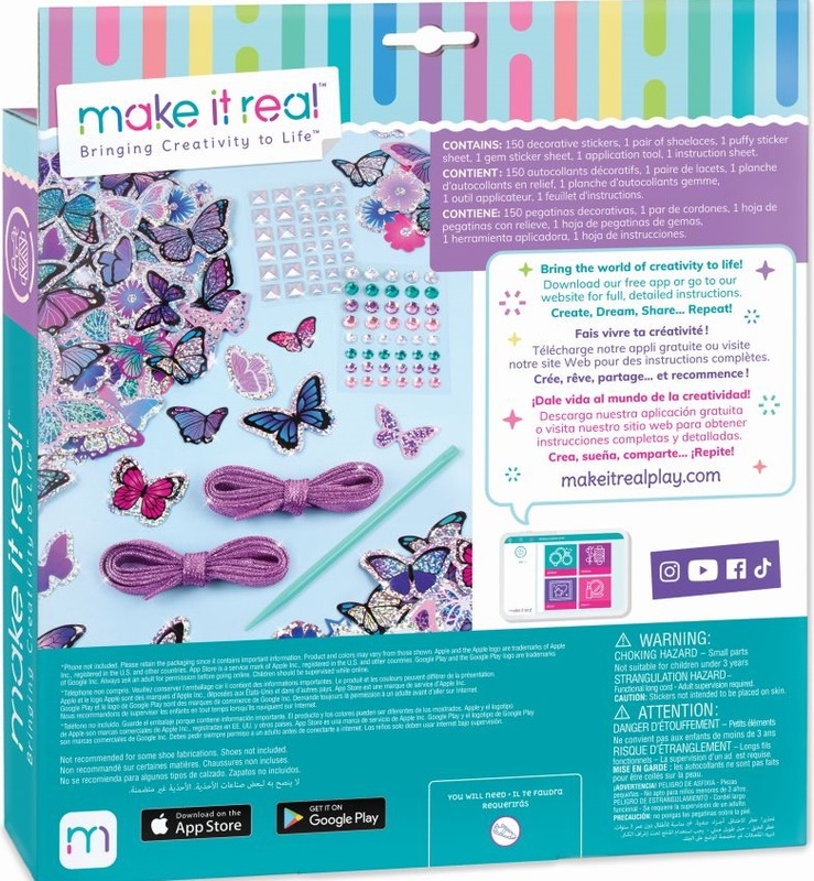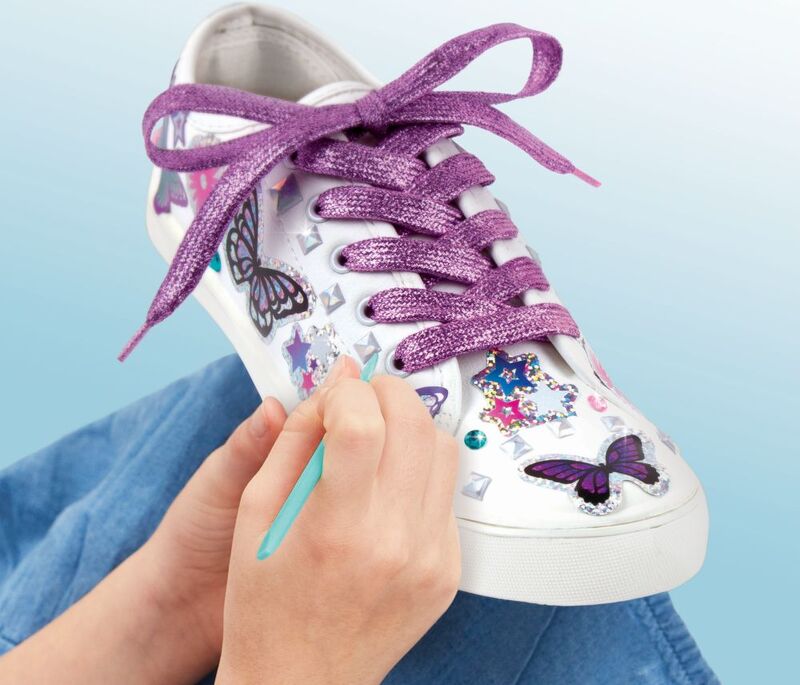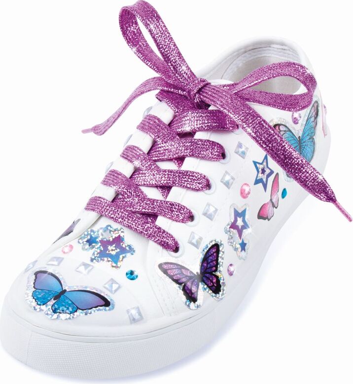 - Das Set enthält 150 Aufkleber, glitzernde Schnürsenkel und zwei Bögen mit dekorativen Strasssteinen.