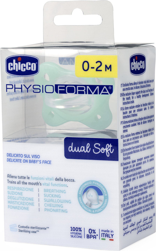 Nach anerkannten Studien trainieren die Schnuller Chicco PhysioForma® alle lebenswichtigen Funktionen des Mundes für ein gesundes Wachstum des Kindes: Atmen, Saugen, Schlucken, Kauen und Sprachbildung.