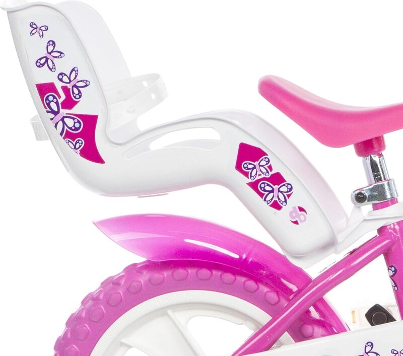 Das von Dino Bikes Italien hergestellte Kinderfahrrad Dino 512L-02 mit Sitz für eine Puppe und Korb – 12 Zoll – ist ein Fahrrad für kleine Radfahrerinnen.