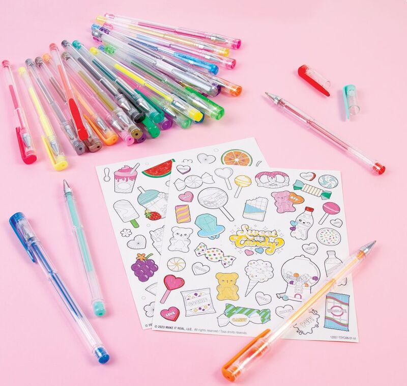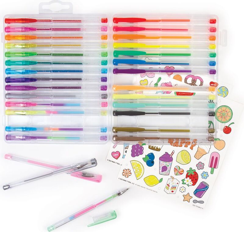 Jeder Stift hat ein Metallic-, Neon-, Krawatten-, Glitzer- oder Pastell-Finish. Bewahren Sie die Stifte einfach im mitgelieferten Etui auf, stecken Sie sie in Ihren Rucksack und nehmen Sie sie mit auf Reisen. Diese duftenden Gelstifte sind ein tolles Geschenk, egal ob für eine Geburtstagsfeier oder einen Feiertag.