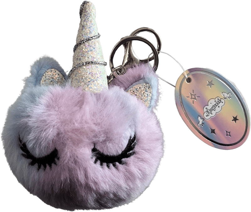 Schlüsselanhänger mit einem Pompon in Form eines Einhorns. Perfektes Accessoire für die Handtasche oder für Schlüssel.