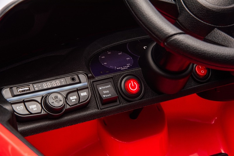 - Das Modell ist mit einer 2.4G-Fernbedienung ausgestattet, die den Eltern volle Kontrolle über Richtung und Geschwindigkeit ermöglicht.