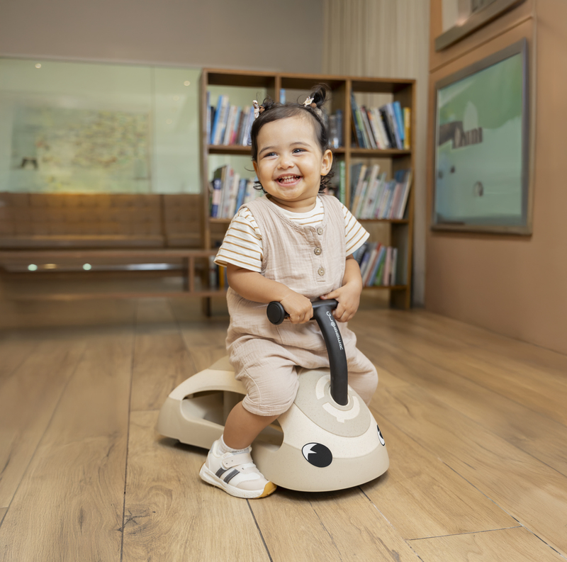 Globber WALK N' ROLL 2in1 ECOLOGIC ist eine innovative Kombination aus Kinder-Laufrad und Gehhilfe, die spielerisches Vergnügen mit ökologischem Denken verbindet. Hergestellt aus 100 % recyceltem Kunststoff und bio-basiertem Weizenstroh, unterstützt dieses Spielzeug die motorische Entwicklung des Kindes von den ersten Sitzversuchen bis zu den ersten Schritten – und das alles umweltfreundlich. Das Produkt erhielt den renommierten German Design Award 2026.