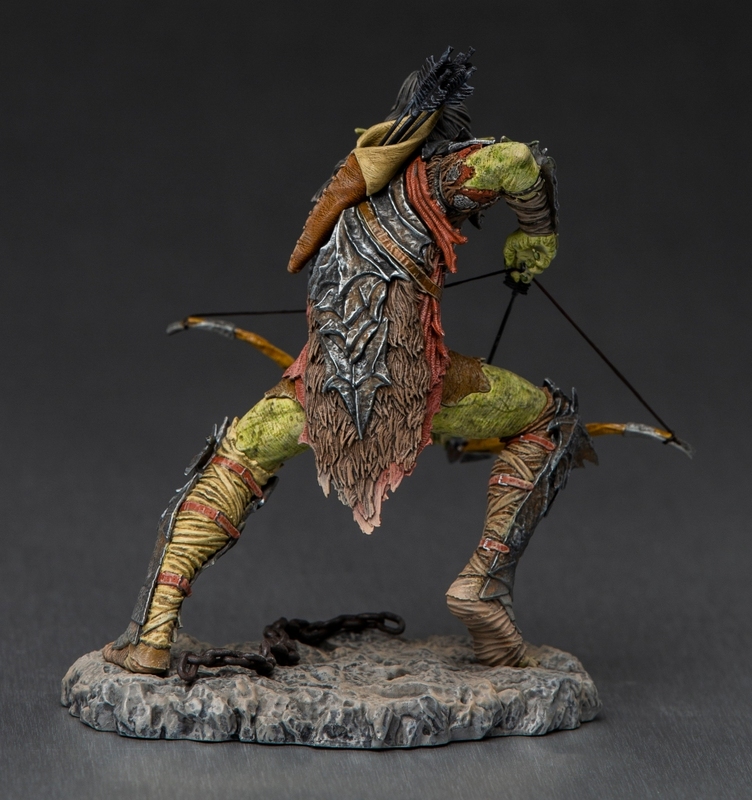 - Die Figur zeigt den Ork-Bogenschützen mit einem vollständig gespannten Bogen und einem vergifteten Pfeil