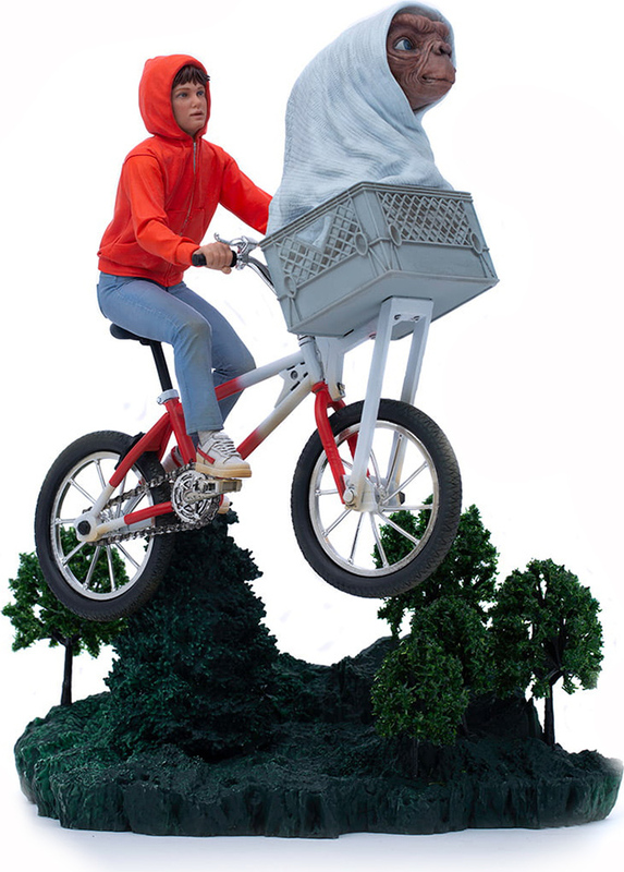 Die Figur ET & Elliot – Art Scale 1/10 fängt eine der ikonischsten Szenen der Filmgeschichte ein, in der der Junge Elliot seinen außerirdischen Freund auf dem Fahrrad fährt und sie gemeinsam über die Landschaft fliegen. Dieser unvergessliche Moment aus dem Film E.T. – Der Außerirdische wurde präzise in Form einer Sammlerstatuette umgesetzt, die die Kraft von Freundschaft und Abenteuer evoziert.