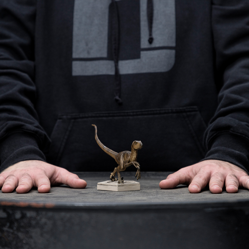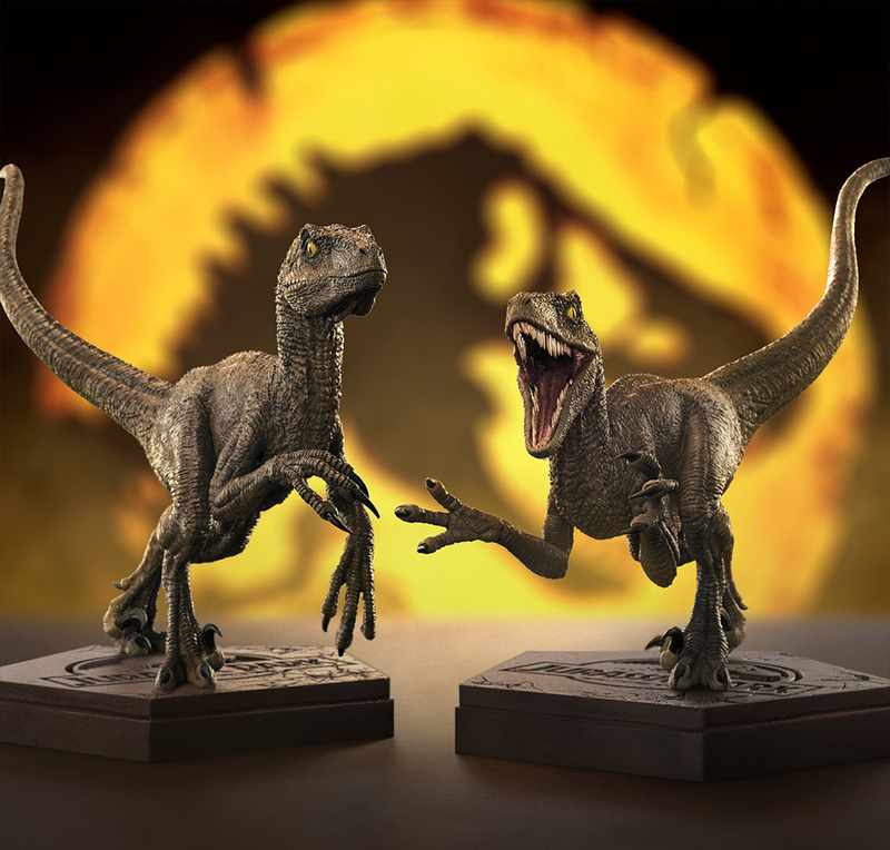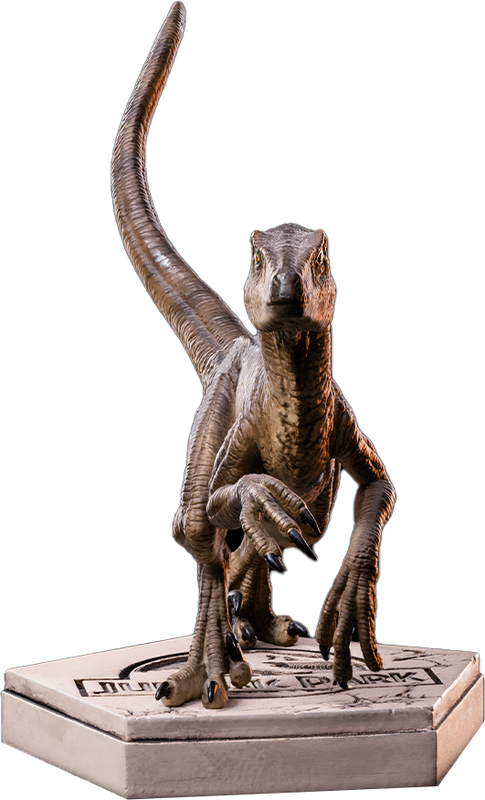Velociraptoren gehören zu den beliebtesten Dinosauriern der Filmreihe Jurassic Park und spielen in jedem Film eine Schlüsselrolle. Sie werden als hochintelligente Wesen dargestellt, die in der Lage sind, Fallen zu stellen und mit Mitgliedern ihres Rudels bei Gruppenjagden zu kommunizieren. Die Figur wurde erstmals am Stand von Iron Studios auf der Veranstaltung SDCC 2022 vorgestellt.