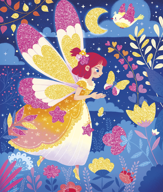 Zauberhafte Welt... Dieses Bastelset kann verwendet werden, um 3 Bilder mit Märchenthema mit Glitzer zu dekorieren!Es enthält 3 Bilder mit markierten Bereichen zum Dekorieren (21 x 25 cm), 2 Taschen mit Glitzer in einem Reißverschlussbeutel (rosa und gold), 1 Kunststoffwerkzeug mit 2 verschiedenen Spitzen (1 spitze Spitze zum Abziehen des Schutzpapiers der zu dekorierenden Bereiche und 1 Löffelspitze zum Zurückführen des Glitzers in die Beutel) und 1 Broschüre mit Anleitung und Vorschlägen. Diese Aktivität, die hilft, Geduld und Kreativität zu entwickeln, dauert etwa 1 Stunde und 30 Minuten.