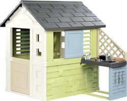Die französische Marke Smoby bietet hochwertige Kunststoffhäuser mit realistischen Details – z.B. Smoby Neo Jura Lodge mit Fensterläden, Glocke und der Möglichkeit zur Erweiterung mit einem Vordach oder Garten.
