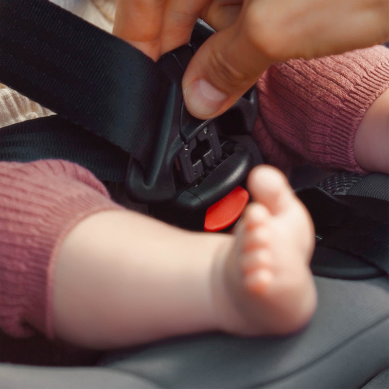 Ermöglicht die Höhenverstellung der Kopfstütze und Gurte mit einer Hand (6 Stufen). Der breite, tiefe Sitz und die weich gepolsterten Materialien erhöhen den Komfort. Außerdem ist eine herausnehmbare Einlage für Kinder bis 60 cm enthalten – sie sorgt für eine bessere Sitzposition und höhere Sicherheit für Neugeborene.
