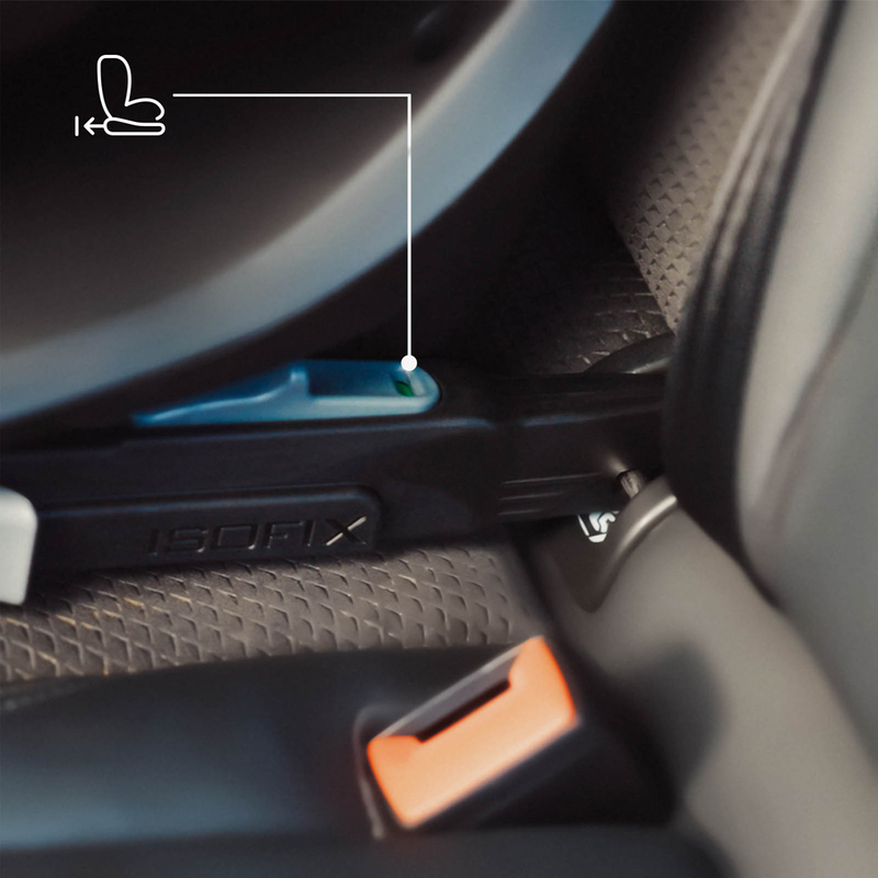 Die Montage erfolgt über ISOFIX, was schnell und sicher ist. Der Sitz ist auch mit einem Stützfuß (11 Stufen) und 4 Indikatoren für die korrekte Installation ausgestattet.