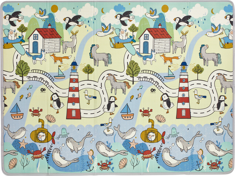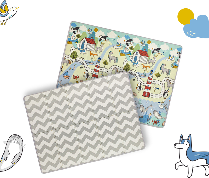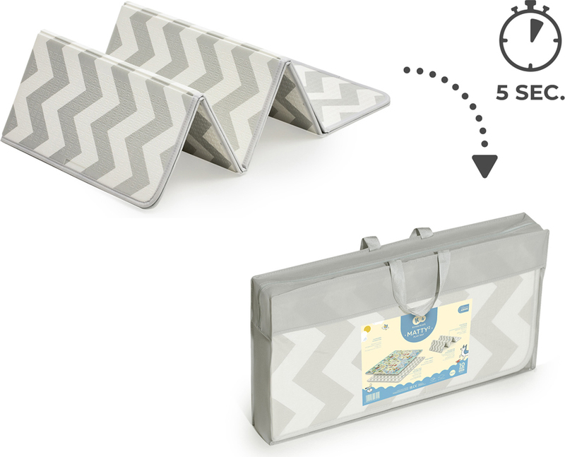 Die beidseitige Schaumstoffmatte MATTY 2 ist der ideale Ort zum Wenden, Krabbeln lernen und für die ersten Schritte. Dank ihrer Dicke bietet sie hervorragende Isolation vom Boden – Ihr Kind kann bequem zu Hause sowie an der frischen Luft entspannen.