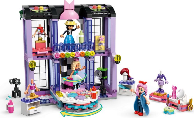 - 3 LEGO® FRIENDS FIGUREN – In diesem Mode- und Verkleidungsspielzeug finden Sie 3 Minifiguren: Paisley, Liann und Nova, die Sie am Schminktisch anpassen und dann auf die Drehbühne stellen können, wo sie ihre Outfits präsentieren