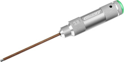 Der hochwertige Innensechskantschraubendreher H-Speed in der Größe 2,0 mm hat einen Aluminiumgriff mit rutschfester Kreuzriefung von 92 mm Länge und 18 mm Durchmesser, mit einer drehbaren Kunststoff-Rückstütze und einer Klingenlänge von 84 mm. Die Klinge ist mit einer Einstellschraube im Griff befestigt.