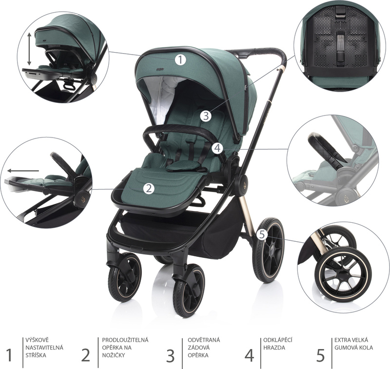 Das erweiterbare und höhenverstellbare Verdeck schützt zuverlässig vor grellem Sonnenlicht, Wind und leichtem Regen. Es ist mit einem Belüftungsfenster ausgestattet, das für angenehme Luftzirkulation sorgt.