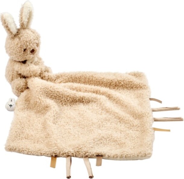 Das weiche Tuch mit einem niedlichen Motiv bietet zahlreiche Greifmöglichkeiten, die die Entwicklung der Sinne und der Feinmotorik fördern. Das Baby kann bequem den Kopf des Tieres oder die interessanten Etiketten an den Seiten greifen. Die praktische Schlaufe ermöglicht es, den Schnuller zu befestigen, damit er immer griffbereit ist.