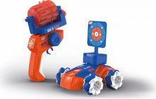 Fahre und schieße mit den berühmten weichen Nerf-Darts und dem Carrera RC Nerf Blasting Car! Fahrer ab 6 Jahren setzen die Blaster-Kassette mit 10 originalen Nerf-Darts, die im Lieferumfang enthalten sind, entweder auf ihren Fahrer oder auf das 17,5 cm lange Auto und können sich verschiedenen neuen Herausforderungen stellen. Im Lieferumfang ist auch eine Zielscheibe enthalten, also ziele sorgfältig und treffe das Ziel aus dem Auto. Die Herausforderung wird noch schwieriger, wenn die am Fahrzeug montierte Zielscheibe durch den Raum saust. Das lizenziertes Nerf-Auto beschleunigt auf bis zu 7 km/h und fährt in alle Richtungen auf speziellen Rädern, während es durch Spielzimmer und Schlafzimmer fährt.