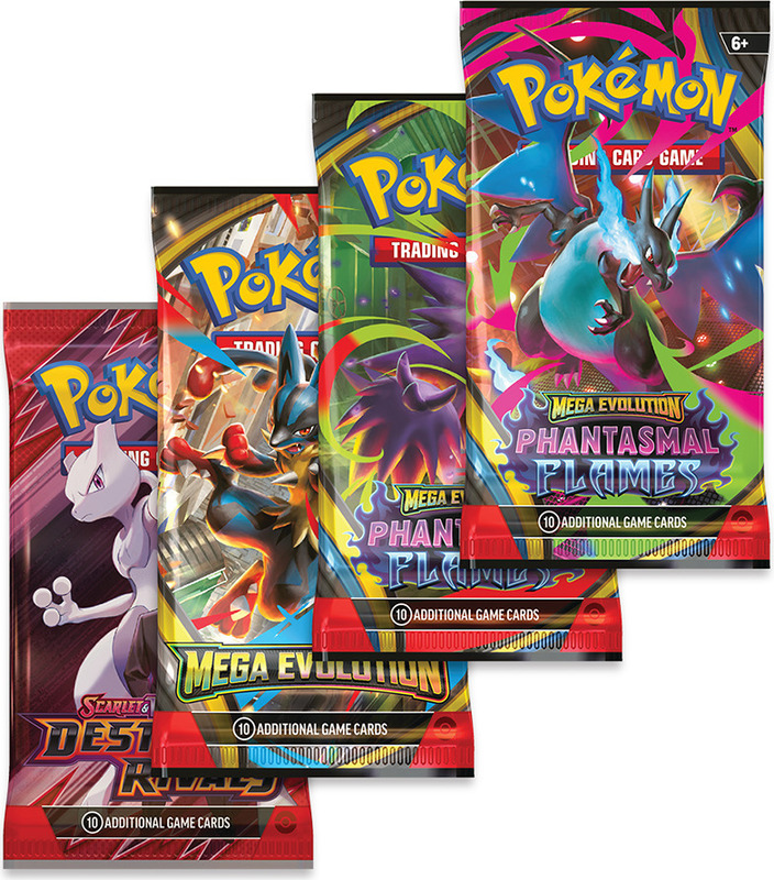 4 Booster-Packs Pokémon TCG: Entpacke eine weitere Ladung seltener Karten und verstärke dein Deck (1x Destined Rivals, 1x Mega Evolution, 2x Phantasmal Flames)