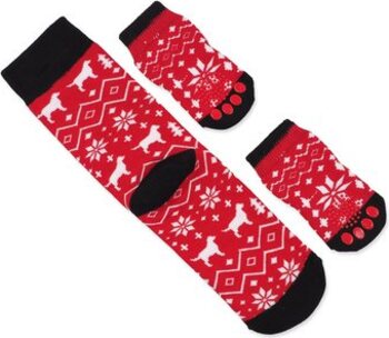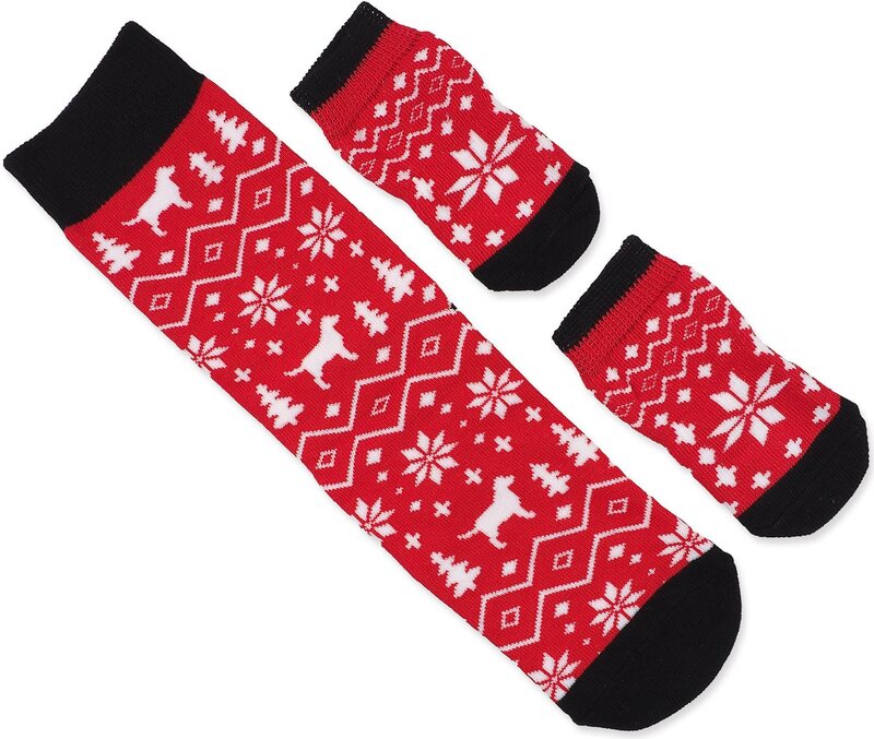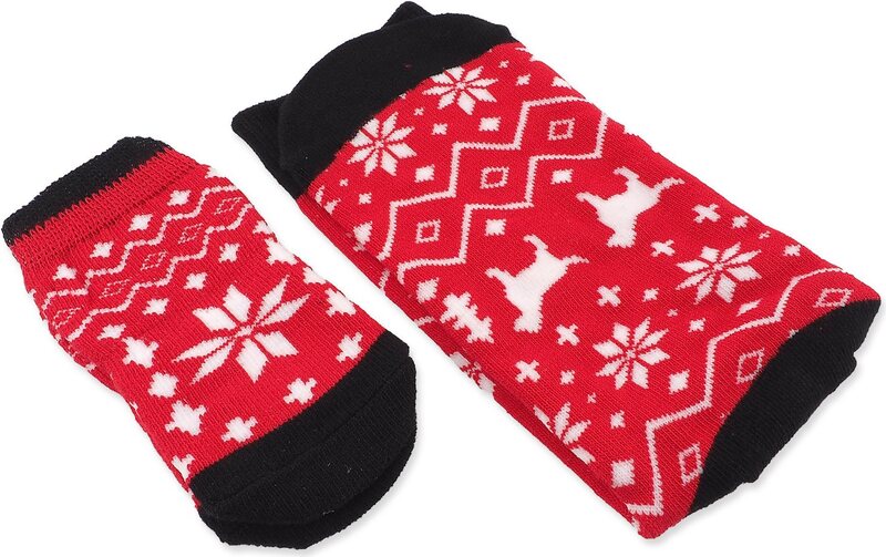 Stimmen Sie sich mit Ihrem Partner ab und tauchen Sie gemeinsam in die Weihnachtsatmosphäre ein. Dieses Set enthält Socken für Herrchen und ihre vierbeinigen Begleiter – ideal für gemeinsame Wohlfühlmomente, Weihnachtsfotos oder gemütliche Zeiten am Baum. Das weiche Material garantiert maximalen Komfort, während das verspielte Weihnachtsmuster jedem ein Lächeln ins Gesicht zaubert.