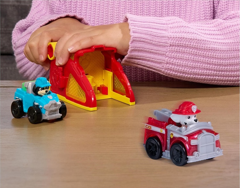 Dieses Set enthält zwei Rennwagen mit einer Größe von etwa 6,5 cm, bereit, in spannende Rettungsmissionen zu starten. Kinder platzieren einfach das Auto im Abschussgerät, ziehen am Griff und sehen zu, wie es direkt ins Geschehen geschossen wird!