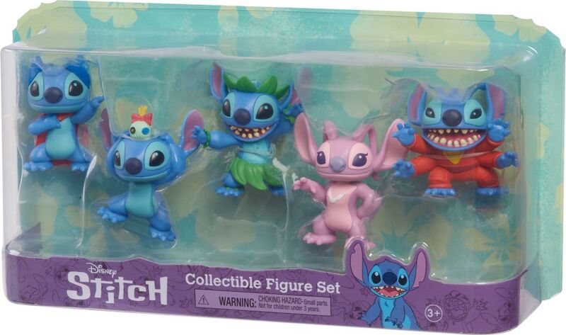 Das Set mit 5 Sammlerfiguren, inspiriert von der Figur des blauen Wesens, wird eine großartige Geschenkidee für alle Kinder ab 3 Jahren sein. Im Paket finden Sie Stitch in der Version als Superheld, Außerirdischer, Engel, Hula-Tänzer und in der Basisversion mit seiner Lieblingspuppe Scrump, die er selbst gemacht hat.