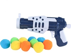 Die Kinderpistole ist 17,5 cm lang und enthält 11 weiche Bälle.
