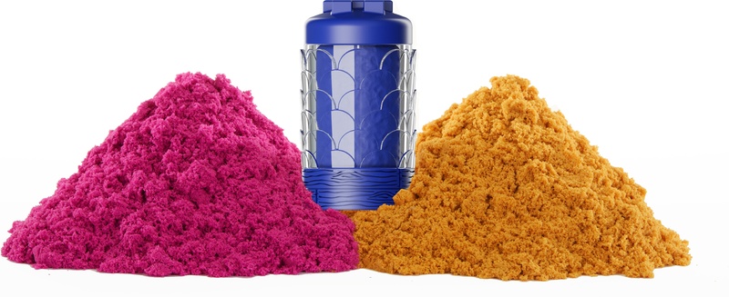 •  Enthält 2 Farben Sand (900 g) und 1 Tube Knete (70 g).