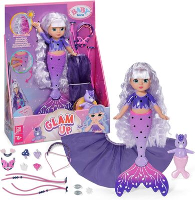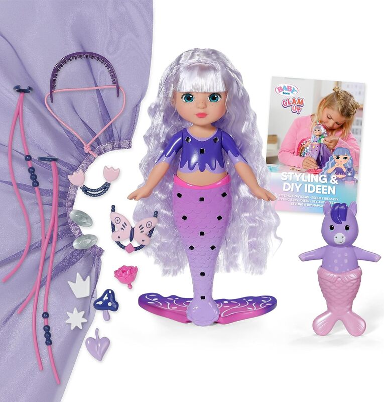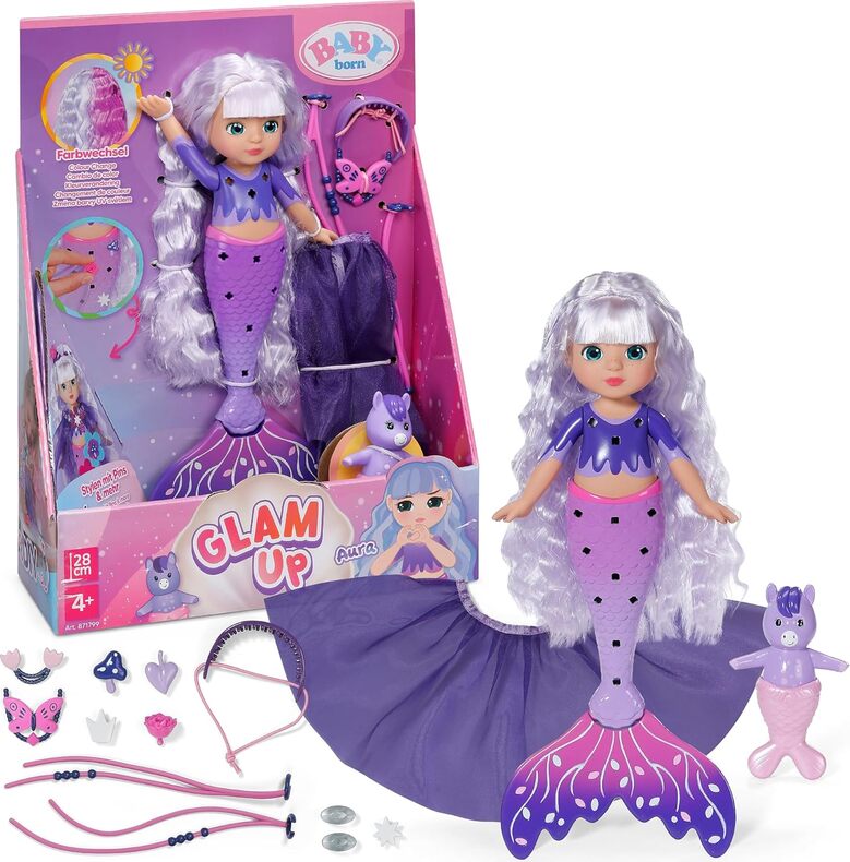 Willkommen in der Welt von BABY born Glam Up!Alles dreht sich um Kreativität, Glitzer und endlose Stylingmöglichkeiten. Die Glam Up Meerjungfrauen laden Kinder ein, ihre Fantasie auszuleben und jedes Detail individuell zu gestalten - immer neu und anders.