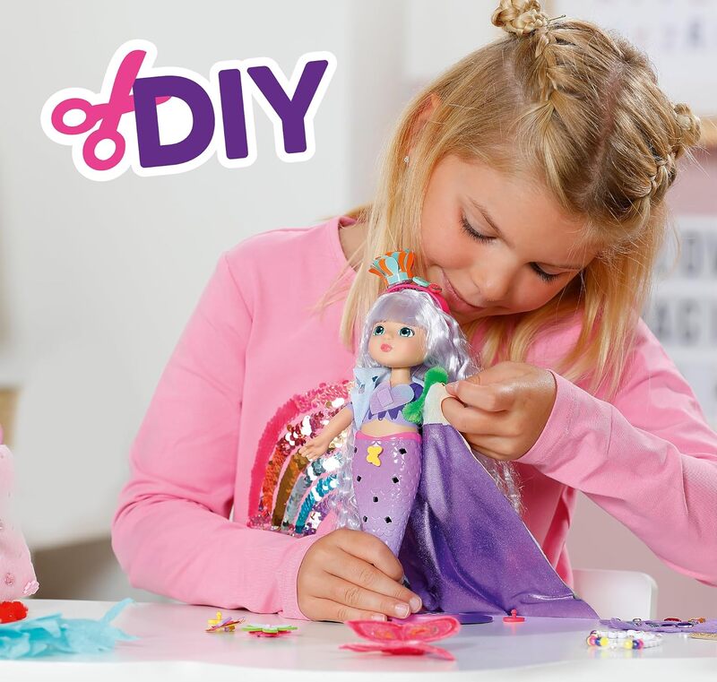 Besonders magisch: Die langen lila Haare ändern ihre Farbe in der Sonne und erzeugen einen echten Wow-Effekt. Ob glitzernde Frisuren, kreative Dekorationen oder einfallsreiches Rollenspiel - mit BABY born Glam Up entdecken Kinder endlose Designmöglichkeiten und lassen ihrer Kreativität freien Lauf.